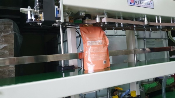 수직형밴드실러로 액상파우치, 스파우트파우치 실링을(삼원포장기자재)