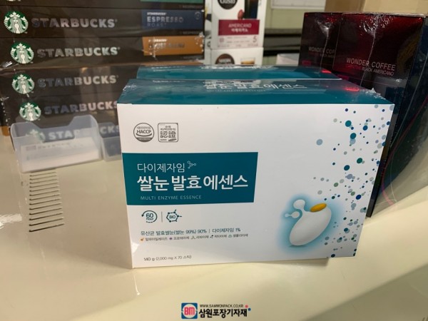 영양제, 건강식품, 커피와 같은 제품의 박스에도 수축포장이 잘어울리죠