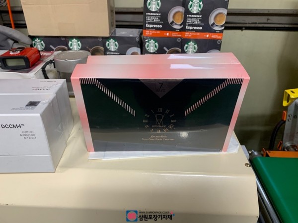화장품박스, 상품박스를 비닐로 포장하는 수축포장기는 박스의 사이즈별로 조절이 가능한데요