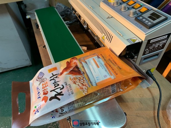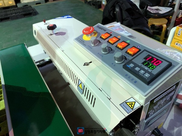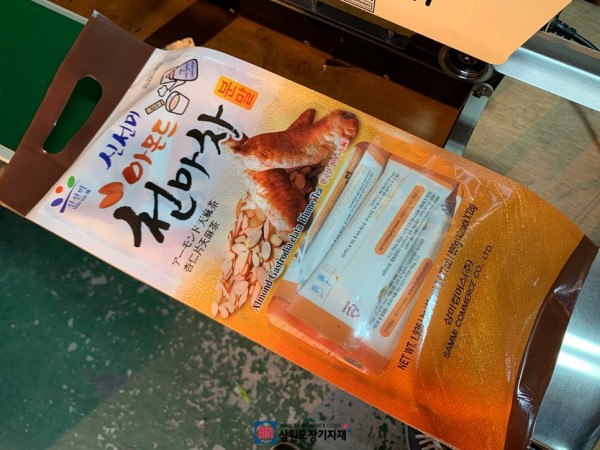 파우치의 아래부분을 실링하고 날인까지 하는 작업으로 밴드실러를 사용하셨습니다.