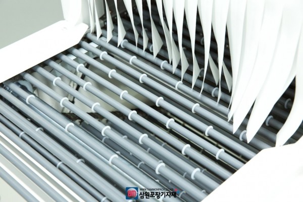 고속으로 제품을 수축필름으로 실링후 터널을 통해 열수축 시켜 제품을 완성시키게 되는데