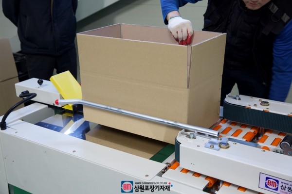 박스를 접고 테이핑을 해주는 하부제함기, 탭핑기는 생산라인에서 제품을 담은후