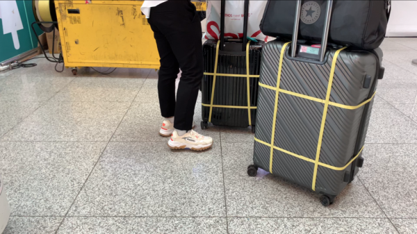 빈틈없이 랩핑이 되기 때문에 비오는 장소에서의 방수, 밀폐포장, 오염방지, 잠금장치 역할등 여러모로 유용한 캐리어 포장방법입니다