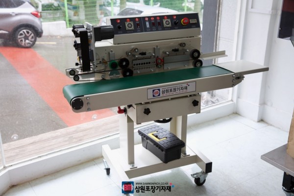 실링과, 날인을 독립적으로 조절 할수 있으며 컨베어 높이, 폭, 조절이 가능하며 틸팅기능으로 앞으로 기울여서 작업할수도 있습니다.
