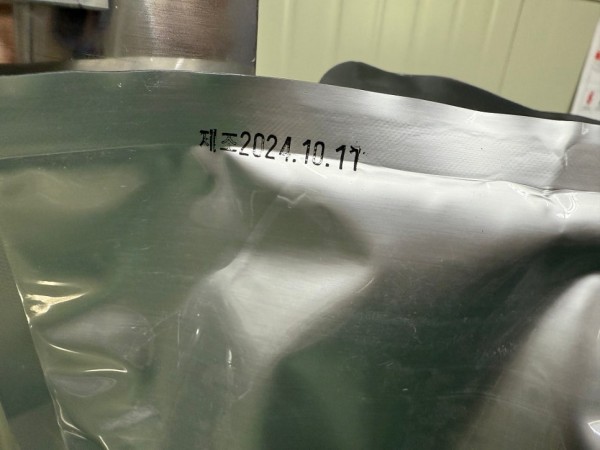 날인은 리본타입 날인기로 제조일자 소비기한 유통기한 등의 글자와 날짜를 변경해서 날인가능합니다.