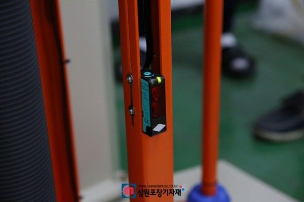 헤드에선 랩의 텐션을 조절할수 있으며 가운데 달린 센서가 제품의 높이를 감지해서 자동으로 상부까지 랩핑을 해주게 됩니다.