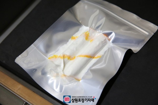 특히 진공포장시 방수제가 많으면 진공포장과정에서 방수제가 파우치밖으로 밀려나가는걸 확인할수 있었는데