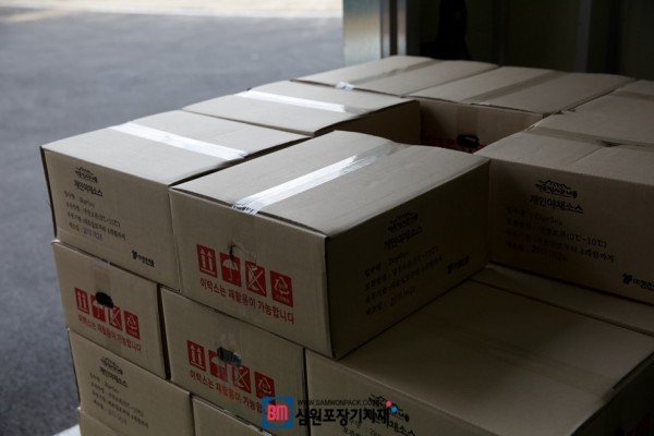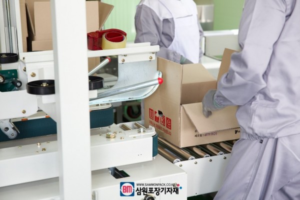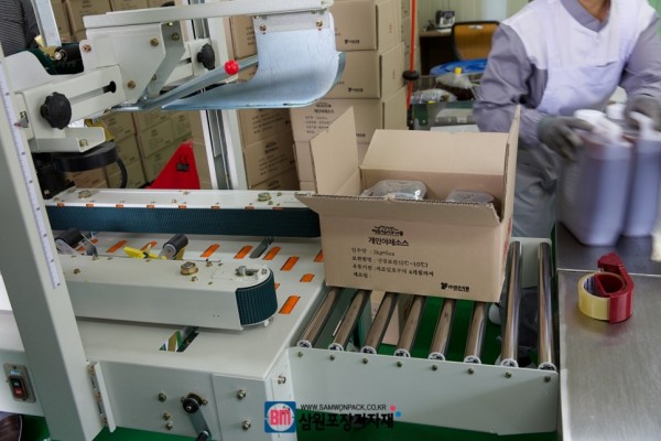 박스포장기, 탭핑기와 자바라 세트로 박스포장도 효율적으로(맛죤식품)