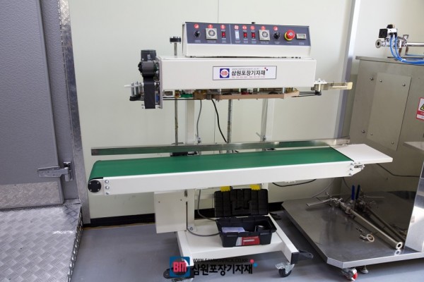 컨베어와 실링헤드 높이조절이 가능하고 이동이 편리한 수직형밴드실러는 실링후 날인까지 한번에 해결할수 있으며 액상 파우치, 지퍼백등을 완벽하게 실링할수가 있습니다.