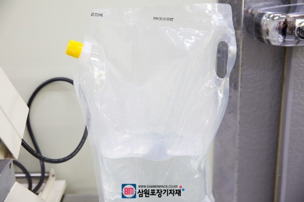 파우치의 두께에 맞게 실링온도, 컨베어속도를 조절해서 액상제품이 완벽히 실링되도록 실링을 했습니다.