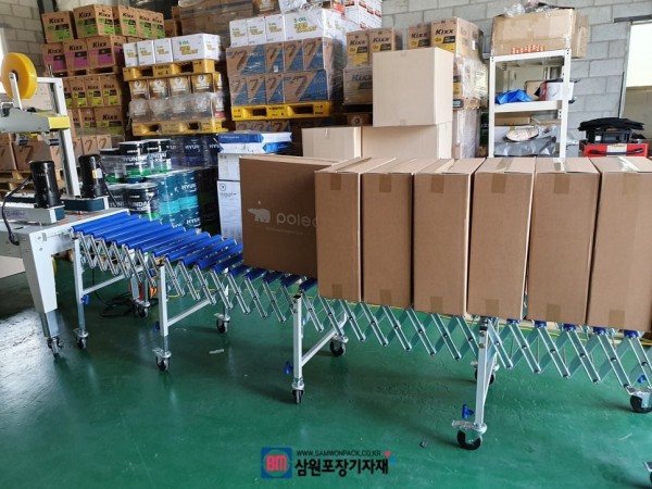 탭핑기는 이렇게 자바라와 연결해서 쓰면 박스포장후 자연스럽게 원하는곳까지 이동이 가능한데요