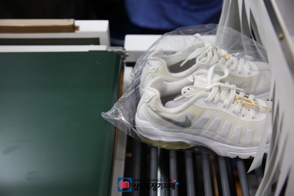 이제는 손으로 포장하지않고 농구화, 운동화, 스니커즈, 등산화까지 깔끔하게 수축포장후 배송할수 있게되었답니다