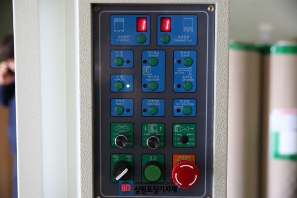 파렛트랩핑기의 조작판은 PCB콘트롤방식으로 원가를 낮추고 성능은 더 뛰어나게 설계되어 있으며