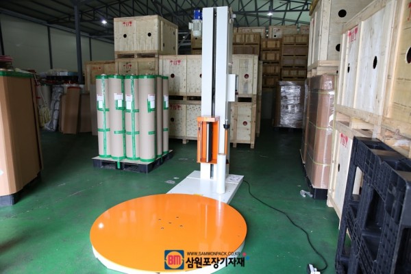 파렛트랩핑기는 파렛트위의 제품을 스트레치필름(기계용랩)으로 포장해주는 기계로 회전원판이 제품을 회전시키고 랩핑기의 헤드가 랩을 연신시켜서 제품을 타이트하게 포장해서 외부오염과 흐트러짐 방지등 효율적으로 포장을 해주게 됩니다.