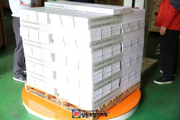 작업자분들이 핸드랩핑했을때보다 당연히 연신율이 좋게 랩포장도 되고 땀흘려 뱅뱅돌면서 작업하지 않아도 되니 효율적으로 작업할수 있다고 너무 좋아하시네요