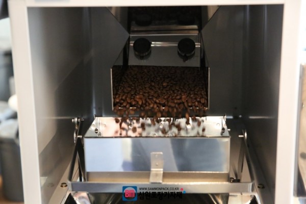 자동계량기의 피더(feeder)는 바이브레이터로 작동하여 원두를 손상없이 계량하며, 작업량에 따라 계량조가 하나인 1연식계량기나 2,3개인 2연식계량기, 3연식계량기등을 선택할수 있습니다.