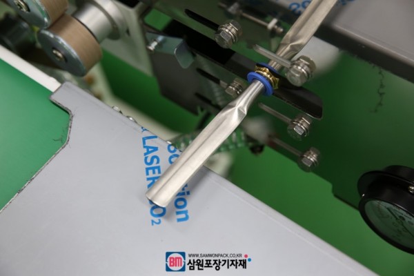 노즐방식의 진공기는 파우치가 테프론벨트에 태울때 왼쪽으로 90도까지 회전하면서 파우치를 끝까지 실링하게 되며