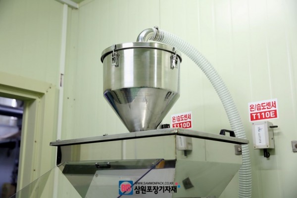 삼원포장의 자동계량기는 진공이송방식(바이브레이터)으로 원료를 손상시키지않고 이동시키고