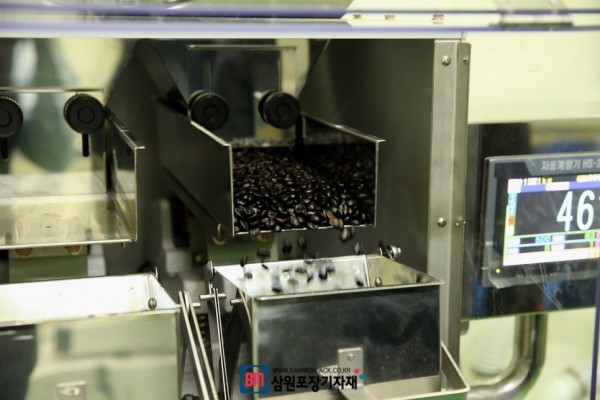 진공이송기로 빨아들여진 원두는 이호퍼에서 계량조로 내려와 소분되며,