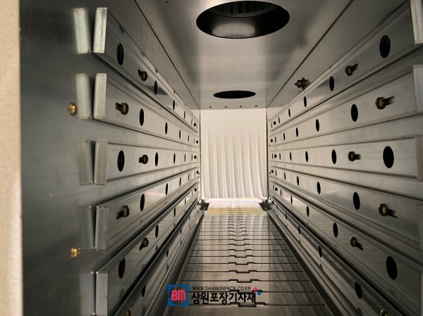 얼마전 화장품 포장을 위해서 반자동수축포장기를 구입했던 회사에서 샤워배스, 어린이 목욕용품등을 수축포장하기위해 수축터널을 추가 구입하셨는데요, 제품을 세워서 이동해야되고, 높이도 있어서 탑체인터널로 주문하셨답니다.