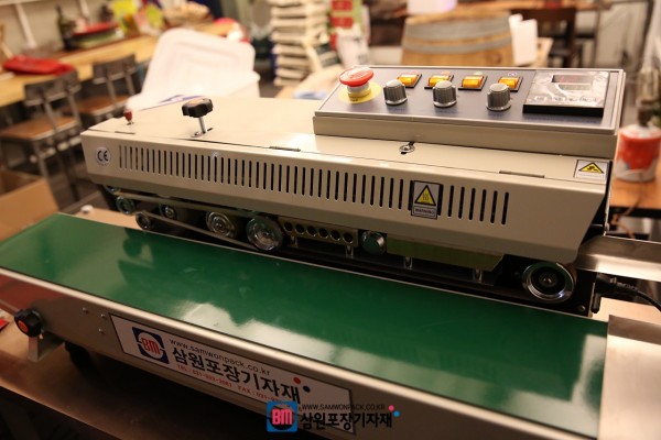 원하는 온도를 설정할수 있는 디지탈온도계가 달린 삼원포장의 밴드실러는 컨베어속도와 날인위치를 조절할수 있고 간단한 조작방법으로 사용하시기 쉽습니다.