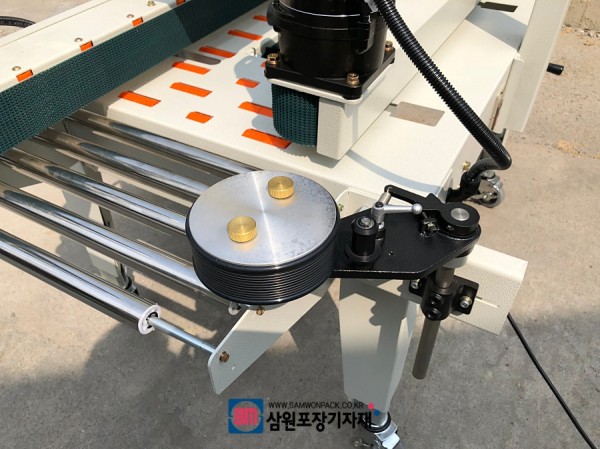 롤코더 장착을 위해서 탭핑기도 개조작업을 해드렸는데요 박스가 롤코더까지 원활한 진행을 할수 있도록 왼쪽 컨베어를 연장해서 제작해드렸답니다.