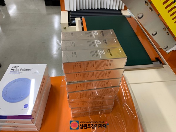 삼원포장에선 이전에도 반자동수축포장기로 화장품포장을 하는 여러업체에 납품경험이 있는데요