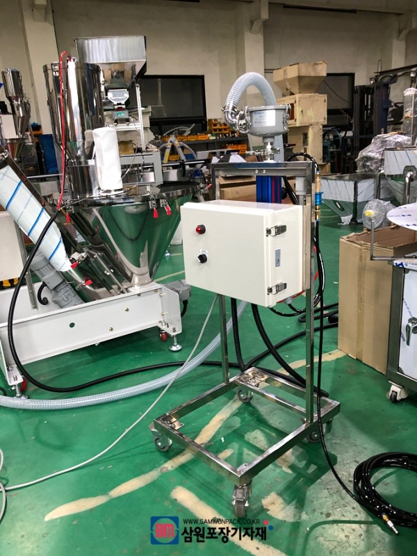 이송관으로 사용되는 호스는 역시 연질의 재질로 움직임이 자유롭고 스크류컨베어, 분말충진기등과 연동해서 효율적인 작업을 하실수 있답니다.