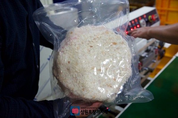 냉동돈까스를 파우치에 넣어서 탈기후 실링, 날인할 예정인데요
