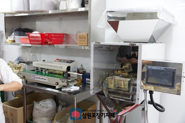 두부과자 계량부터 실링 포장이 한번에 할수 있으니 최소한의 작업자로 대량작업이 가능해졌네요