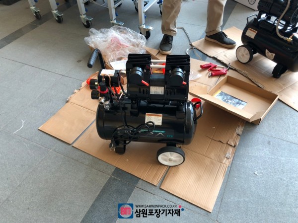 하부제함 및 상하일체형 탭핑기는 하부제함시 박스를 접어주는 부분과 박스를 밀어주는 푸쉬까지 공기압을 사용하기 때문에 컴프레서가 필요합니다