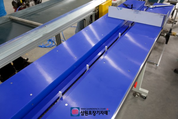 이후 배출된 포장제품은 자바라나, 컨베어등과 연결하면 더욱 편하게 포장후 이동이 가능하며