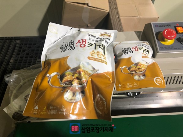 두번째 방문한 업체는 맛있는 카레를 포장하는 곳으로 파우치의 상단이 아닌 하단을 실링하고 날인까지 하시길 원하셔서 수평형밴드실러로 추천드렸습니다