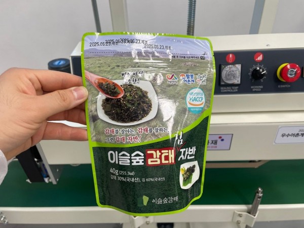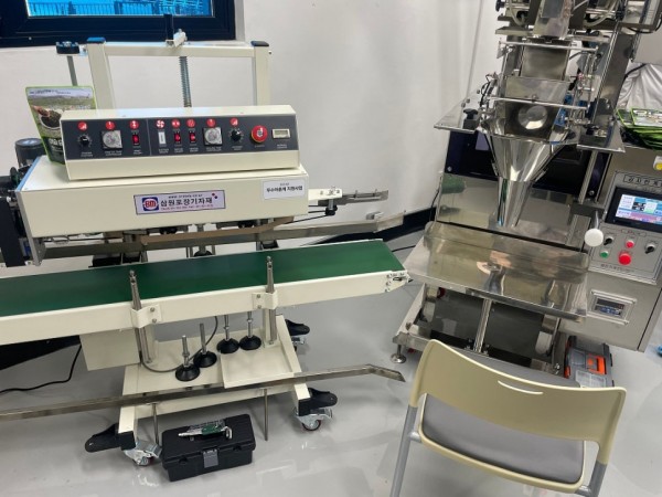 식품 스탠드 파우치 실링하는 수직형밴드실러, 수직밴드실러 추천(팔봉계어촌계)