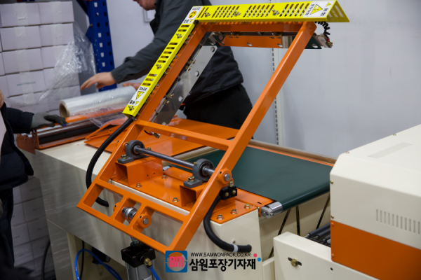 반자동 수축포장기가 연결된 모습입니다.