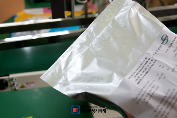 날짜등을 손쉽게 교체 가능하며 컨베어에 제품을 넣으면 실링, 두가지를 한꺼번에 하기 때문에