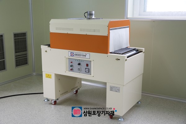 수축터널의 모습입니다. 제품과 필름을 히터의 열풍으로 수축해서 터널을 이동하면서 수축포장을 하는 제품이죠~