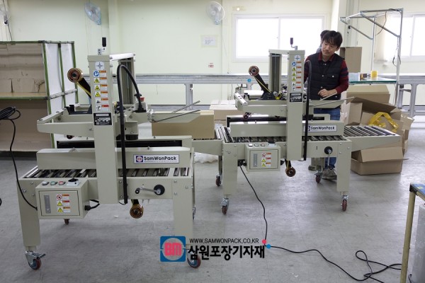 오늘은 반자동 테이핑기를 두대 납품했습니다!(나란히 있는 모습만 봐도 수월한 작업이 예상되네요)