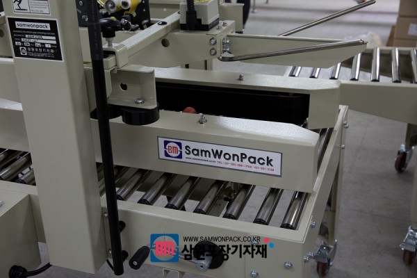 투입구에서 날개에 의한 자동박스 접이도 가능하며(일부박스제외) 테이프 접착면의 길이도 조절가능합니다.