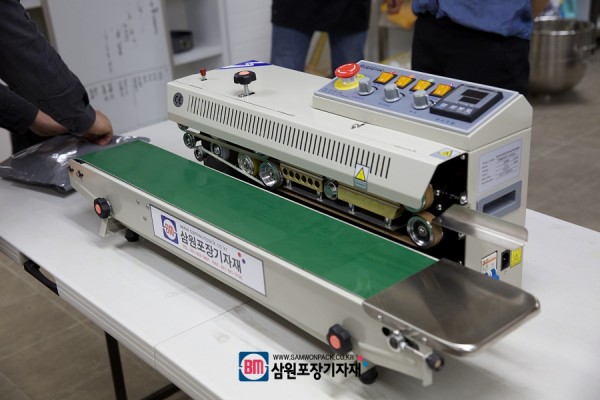 쿠키를 만들고 봉투에 담기위해 탁상형 밴드실러라고 불리는 미니 밴드실러 (수평모델)을 설치해드렸습니다.