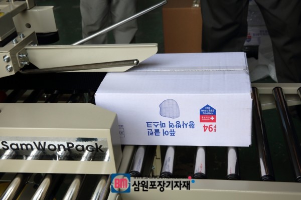 황사방역마스크를 제조하는 업체로 테이핑기의 설치로 분당 평균 15개의 박스를 포장할수 있게 되었으며