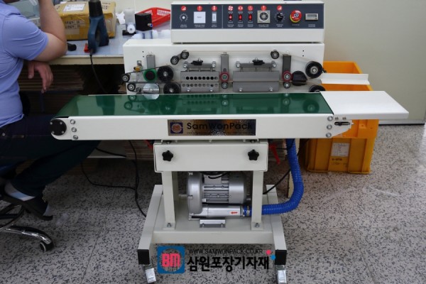 반도체 장비중 수지 가공 부품을 포장하기위해 탈기, 무인자 (인자 가능), 실링을 한번에 할수 있는 대형 밴드실러를 주문해주셨으며 탈기를 함으로써 부피절감 및 유통기한등을 높일수 있습니다.