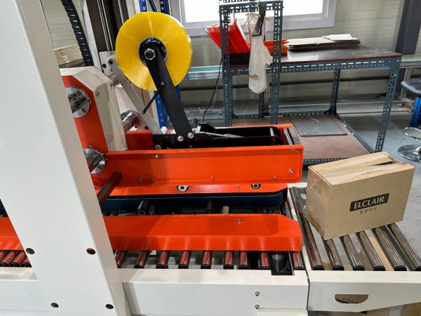 오늘은 출고된 박스테이핑기는 박스가 진입하면 박스의 상하를 테이핑하는건 물론 박스의 상부를 자동으로 접어주는 자동테이핑기로