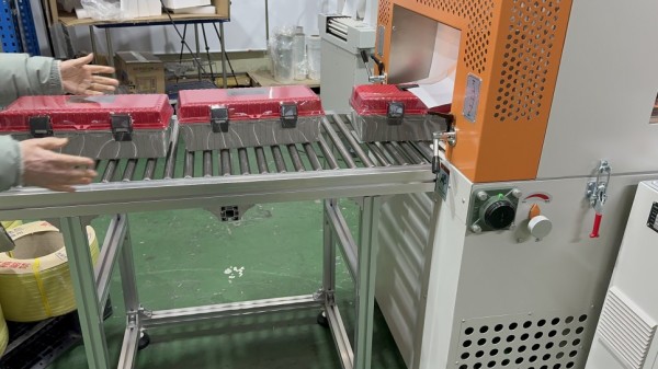 전동컨베이어등을 통해 진입하는 제품은 자동으로 센서가 감지해서 순차적으로 실링하게 되며