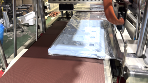 일반적으로 쇼핑몰에서 택배 상품을 포장하는데도 사용하지만, 제품 비닐포장에 사용하면 삼면포장기 보다 빠르고 효율적 생산성을 높일수가 있어서 인기가 많습니다.