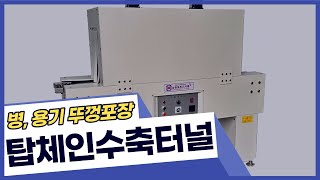 병, 용기 뚜껑수축포장 루땡포장하는 탑체인수축터널. 탑…