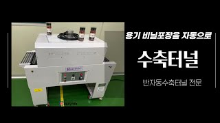 수축터널로 용기 수축필름 씌워서 수축포장까지 자동으로(…