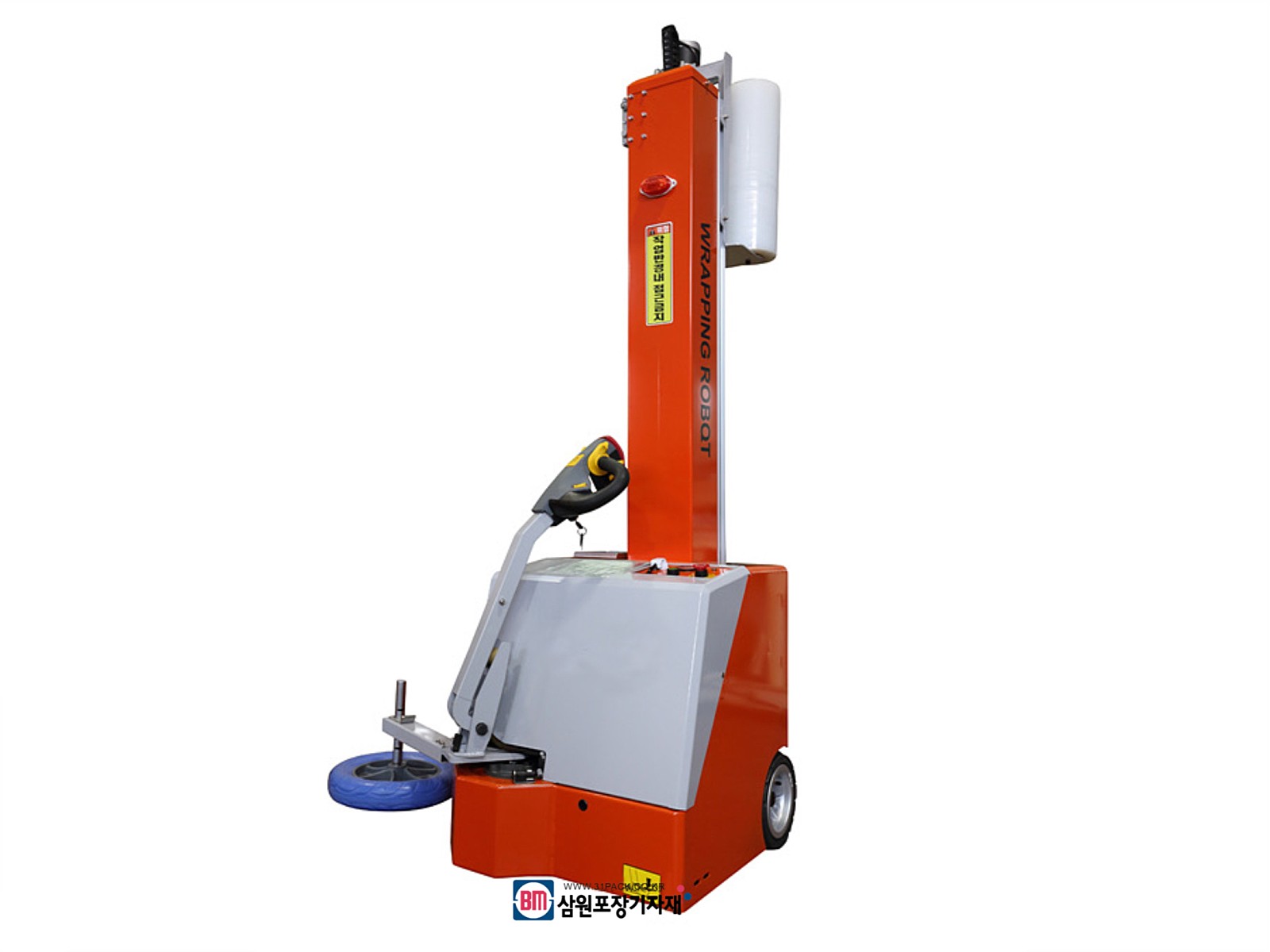 비상정지 버튼이 있어 주행과 정지를 빠르게 제어할수 있으며 작업진행 중에는 경광등이 점등되며 리모콘 콘트롤이 가능하며 다양한 프로그램 작업이 가능한 최상위 성능의 로봇랩핑기, 랩핑로봇입니다.
